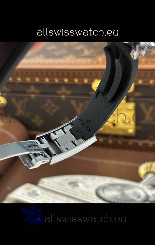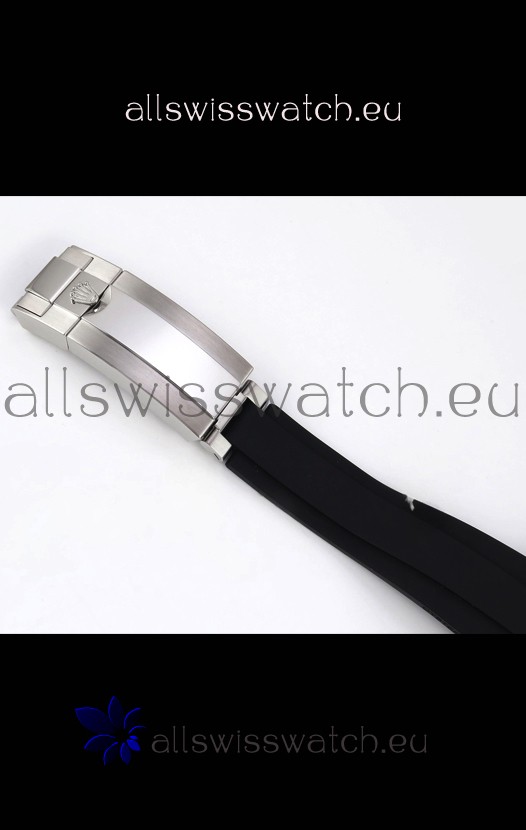 Genuine Oyster Flex Rubber Strap with New style Flip-Lock Perfectly Replicated Clasp Complete with Rolex Markings and Engravings as per the Genuine