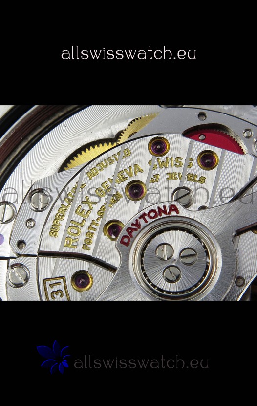 Genuine Cal.4131 Movement built from Scratch with no modifications, Platinum Plating on Rotors and Plates as per the original. The Same movement you find in Rolex Daytona Watches