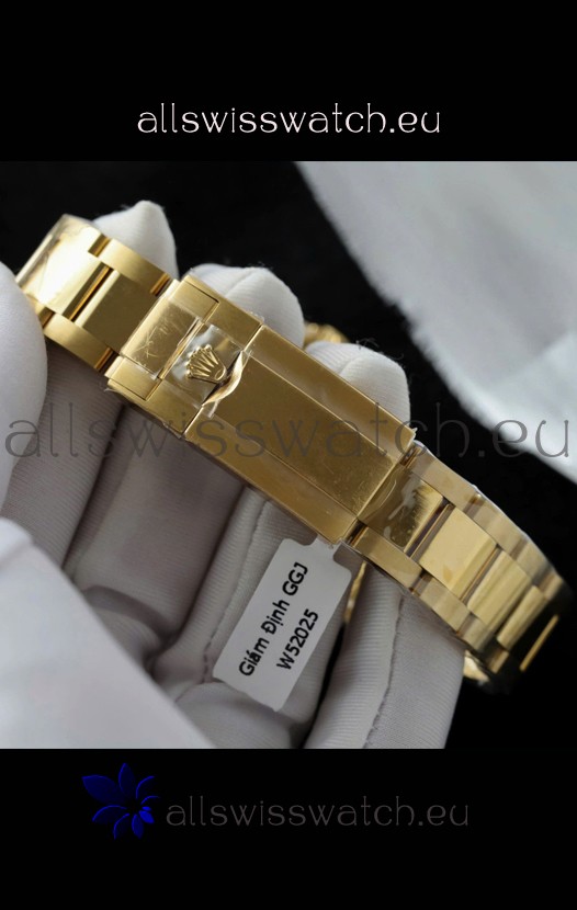 18K Yellow Gold Plating on 904 Solid Stainless Case with Rolex Markings and Engravings like the Authentic.