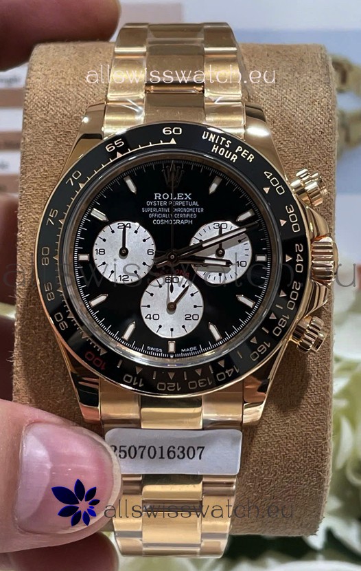 The Best Rolex Daytona Model Replicated up to Date. The First Rolex model to adopt a 904L Steel on Casing and Strap which is the same steel used by Rolex. Compared with an Original Side by Side and there were NO Differences Whatsoever. Complete list of details have been stated below and you will see that tremendous amount of detaiing and work has been put into this edition.