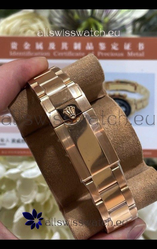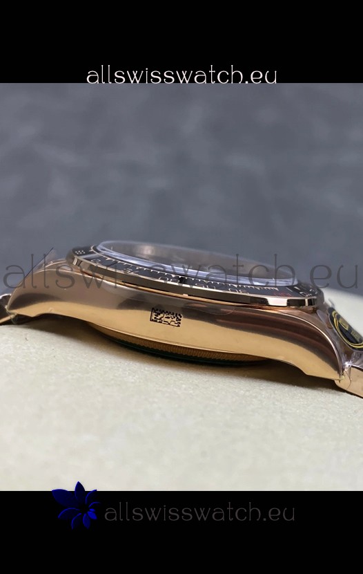 18K Rose Gold Plating on 904 Solid Stainless Case with Rolex Markings and Engravings like the Authentic.