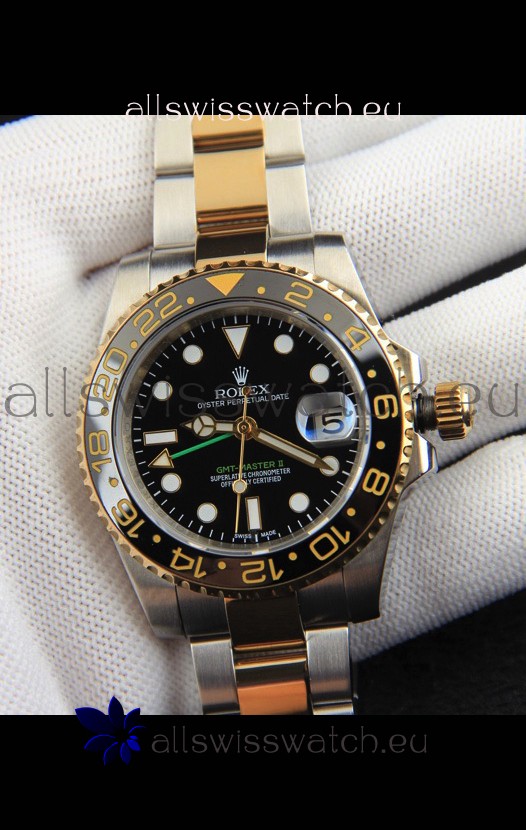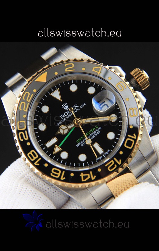You're reviewing: Rolex GMT Masters II 2 Tone Rose Gold Plating Japanese Replica Watch Black Dial