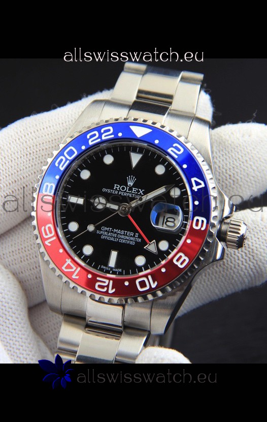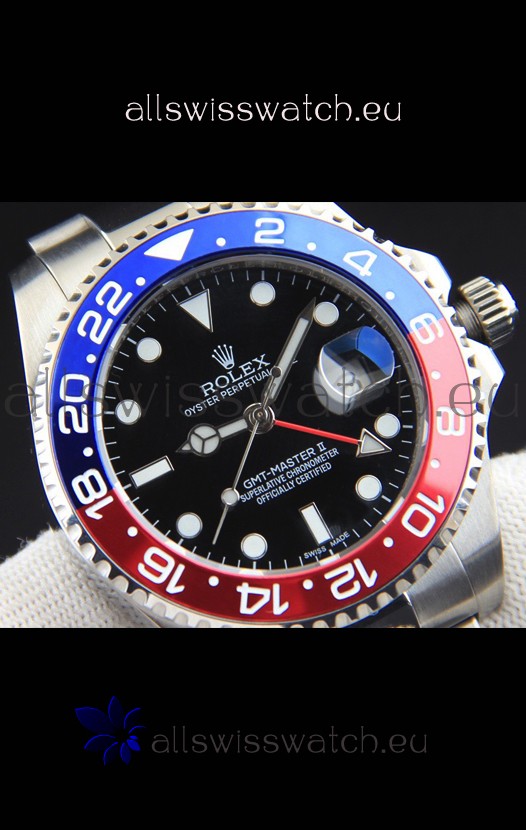 Rolex GMT Masters II Japanese Movement Replica Watch Steel Case Black Dial
