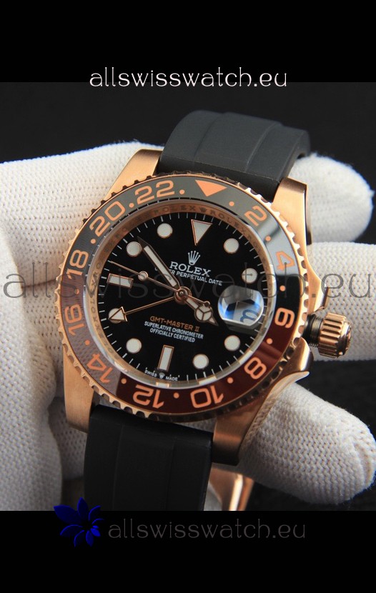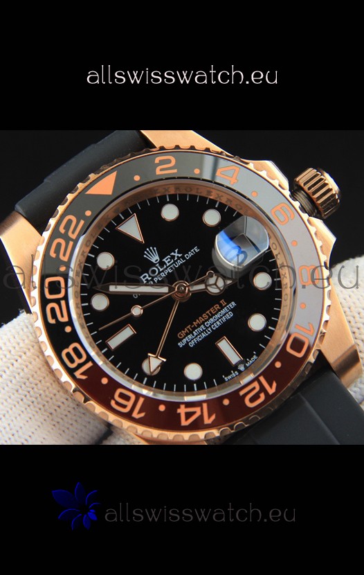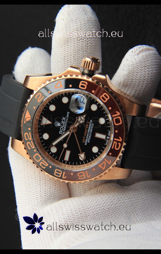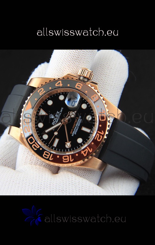 You're reviewing: Rolex GMT Masters II Rose Gold on Oysterflex Japanese Replica Watch