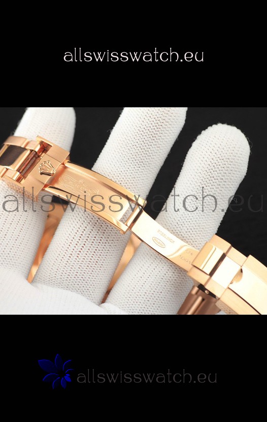 18K Rose Gold Plating on 904L Stainless Steel Strap with Rolex Clasps complete with Rolex Markings/Engravings