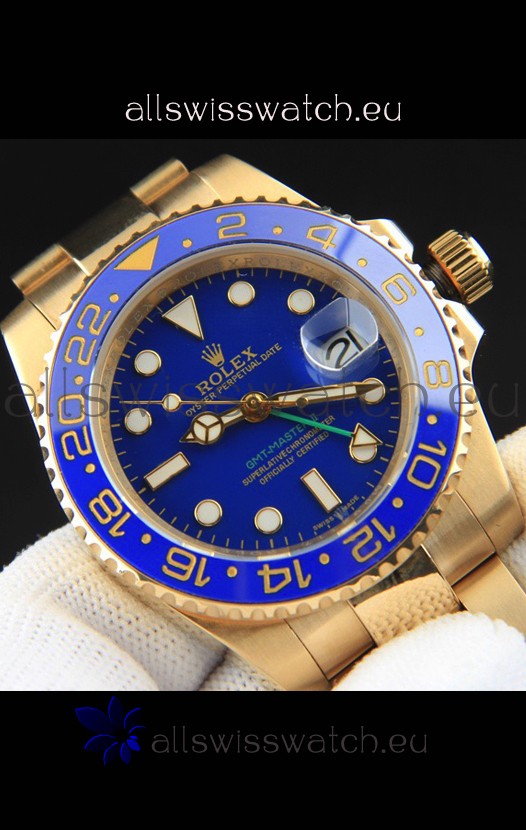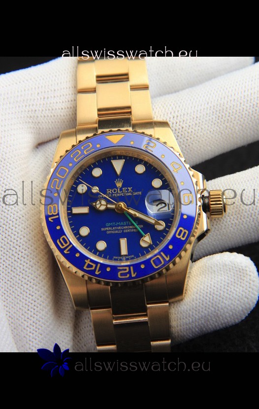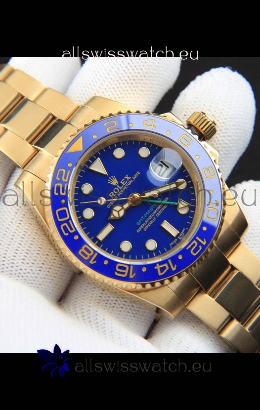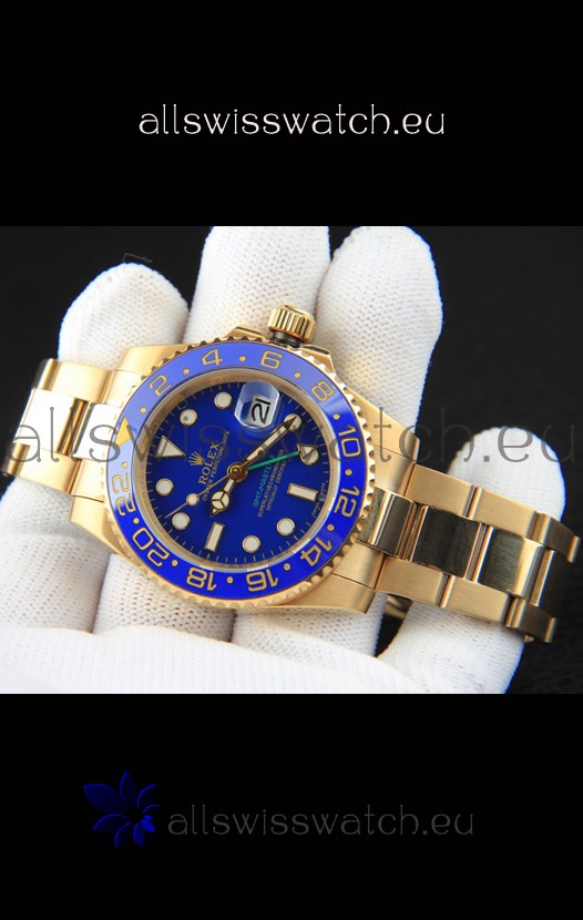 You're reviewing: Rolex GMT Masters II Rose Gold Plating Japanese Replica Watch Blue Dial