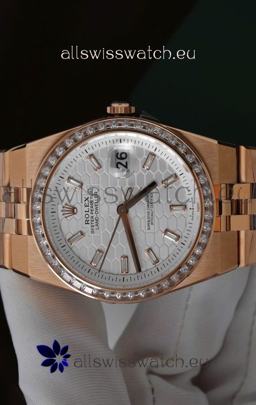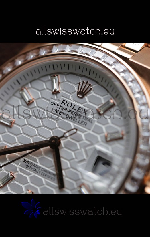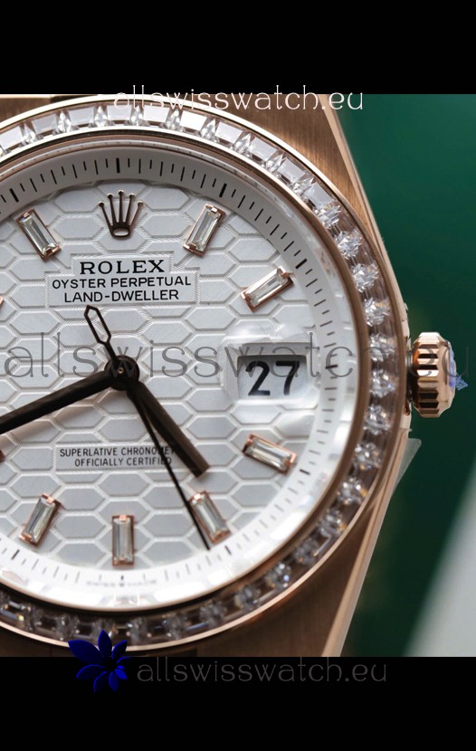 You're reviewing: Rolex Land-Dweller 127335 Steel Honeycomb Rose Gold 40MM Swiss Replica Watch