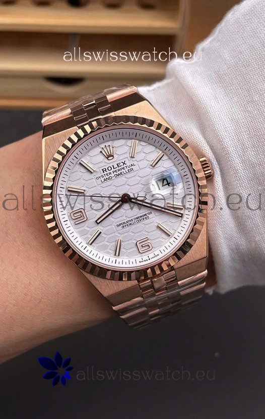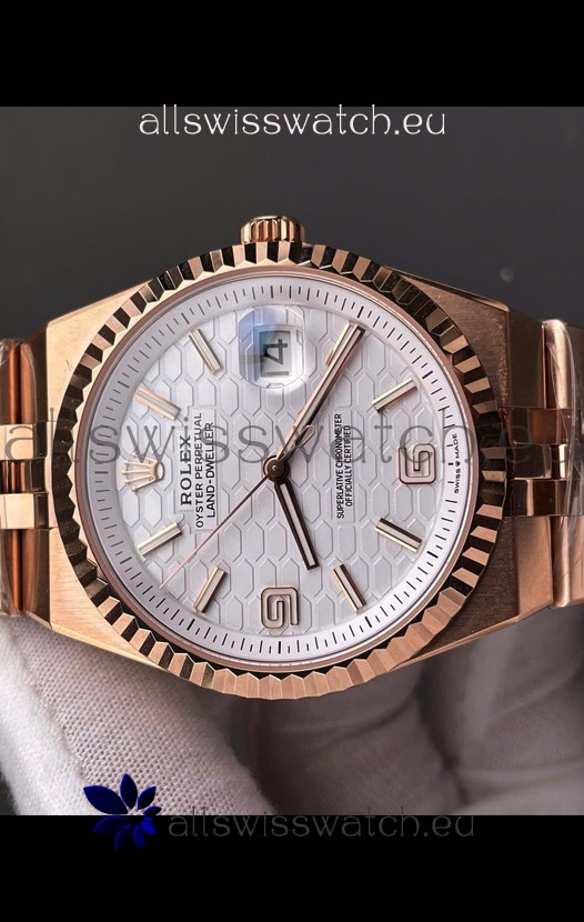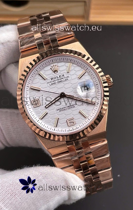 You're reviewing: Rolex Land-Dweller 127335 Steel Honeycomb Rose Gold 40MM Swiss Replica Watch