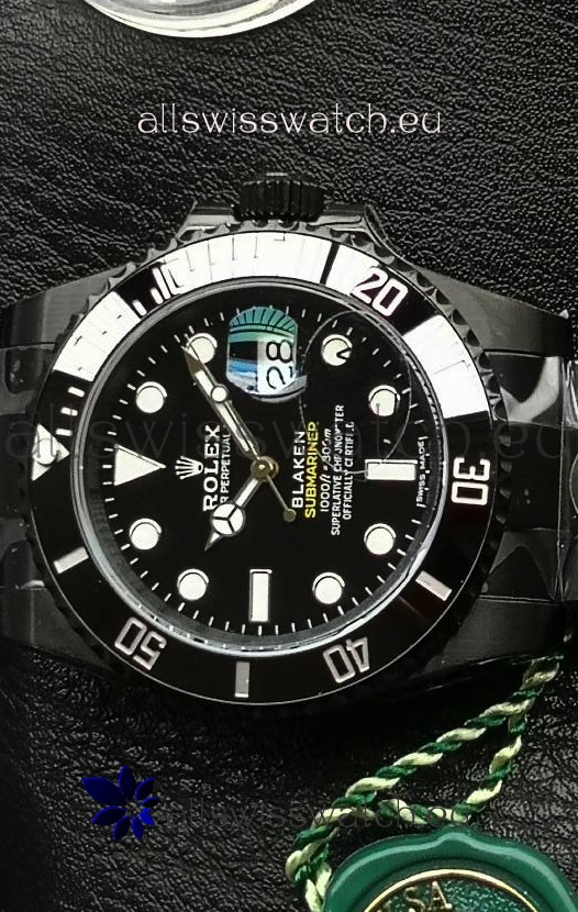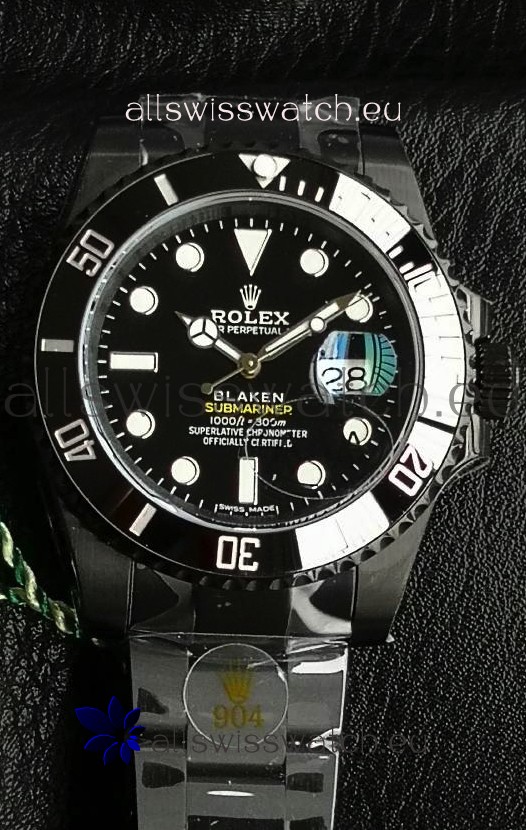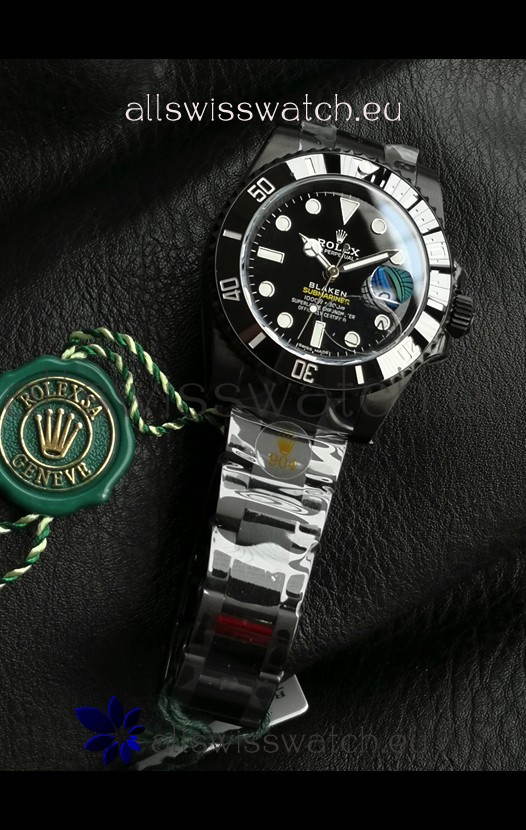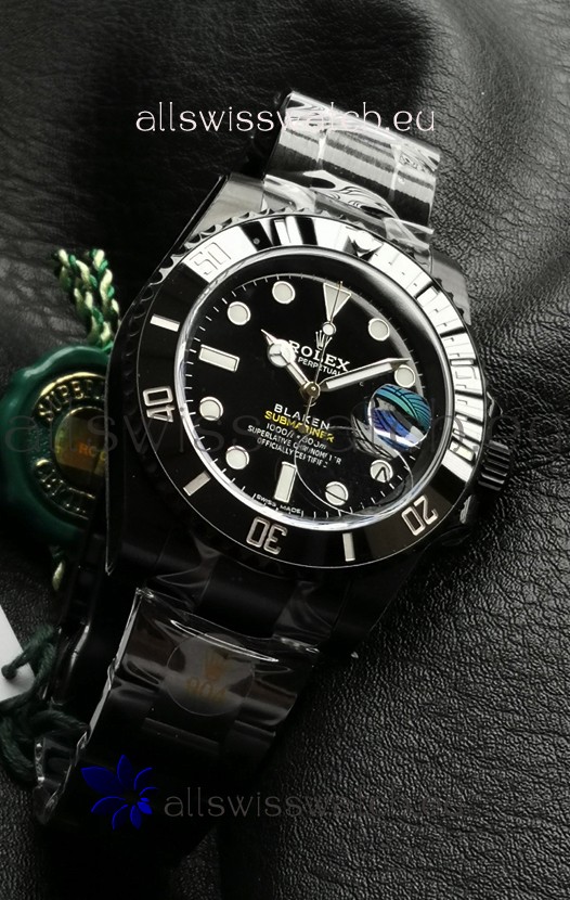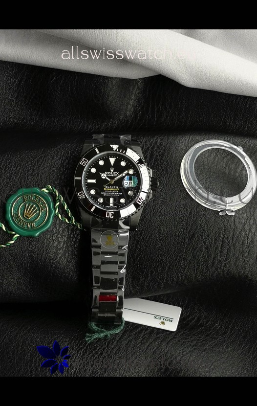 Rolex Submariner Blaken DLC Coated Swiss Replica Watch in Black Dial