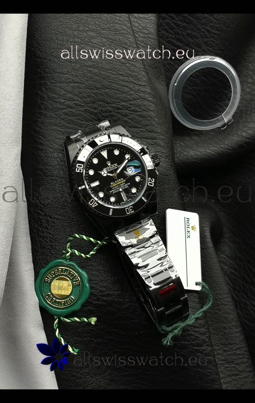 You're reviewing: Rolex Submariner Blaken DLC Coated Swiss Replica Watch in Black Dial