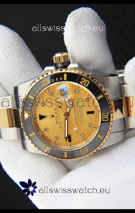 You're reviewing: Rolex Submariner Japanese Replica Watch in 2 Tone Yellow Gold Casing Gold Dial