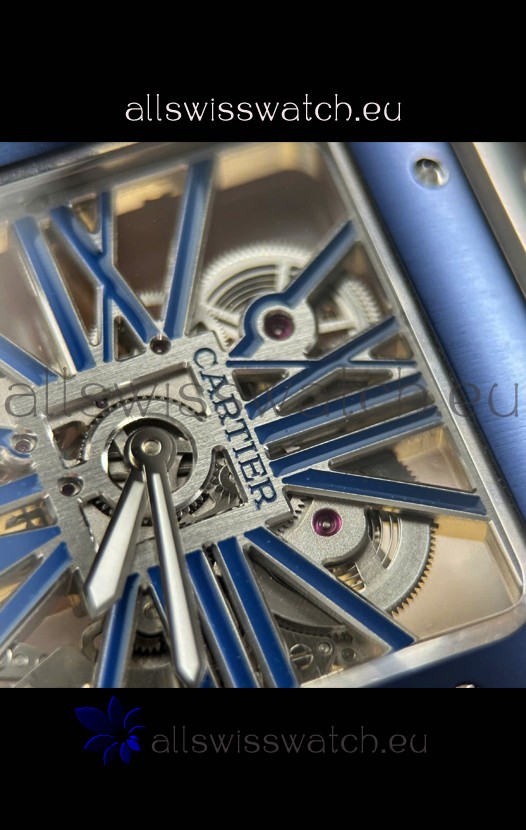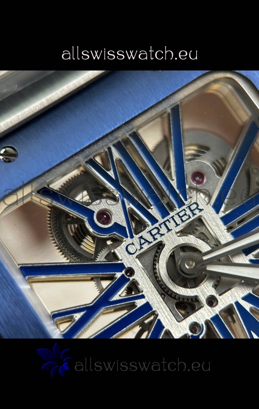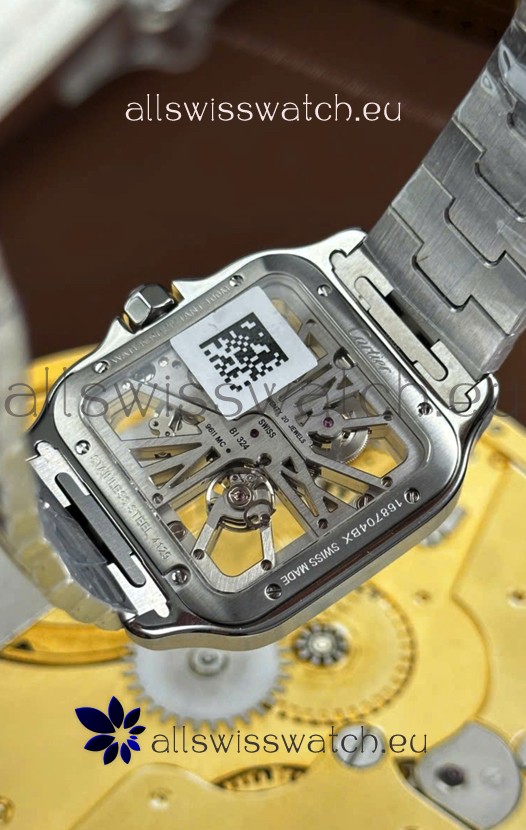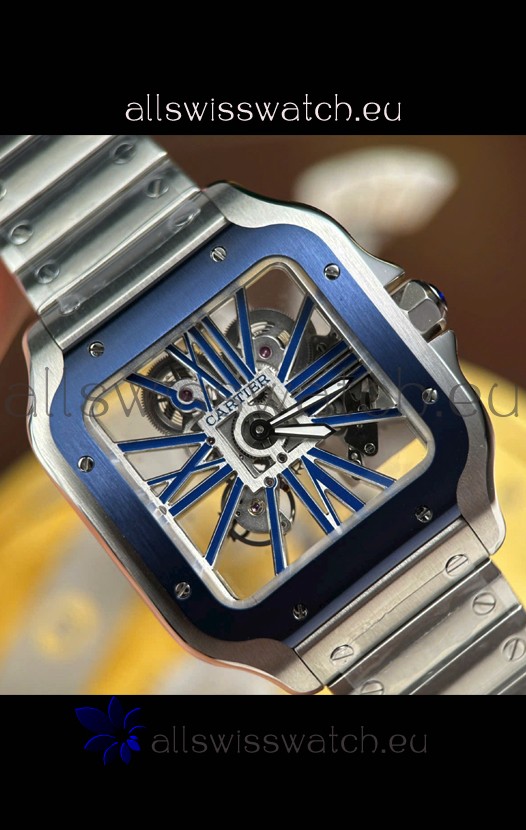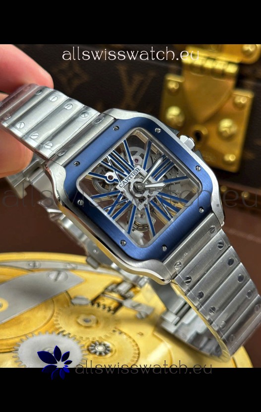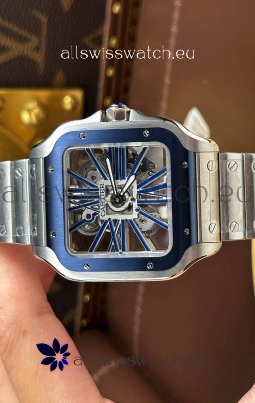 Santos De Cartier Super Clone Watch in Skeleton Dial Brushed Steel Casing Watch