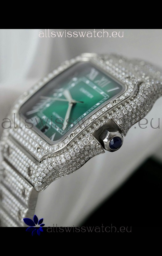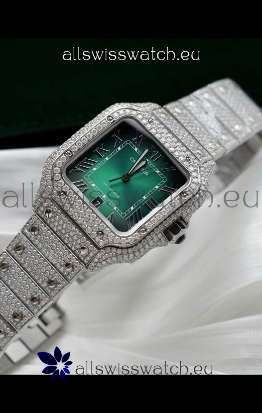 Santos De Cartier Watch in Green Dial MOSSANITES Paved Edition Swiss Replica Watch
