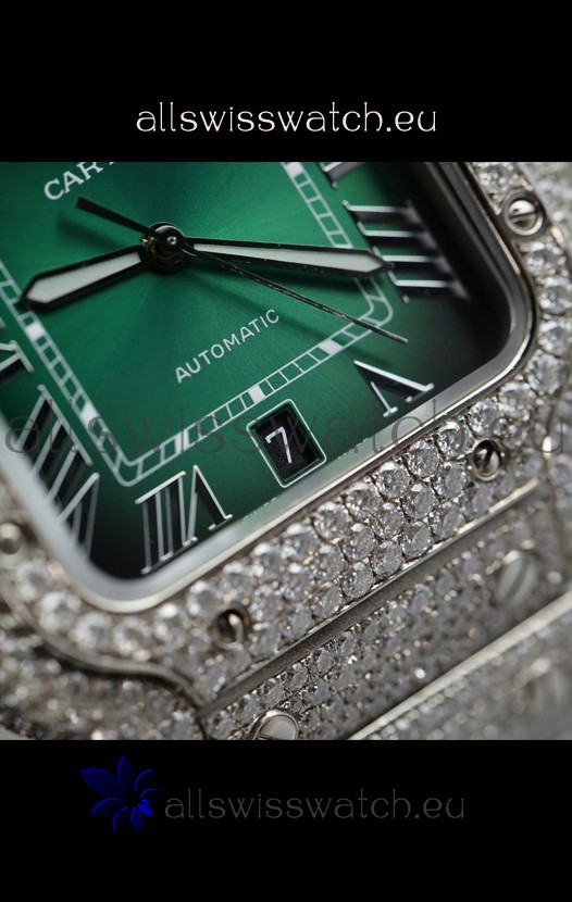 You're reviewing: Santos De Cartier Watch in Green Dial MOSSANITES Paved Edition Swiss Replica Watch
