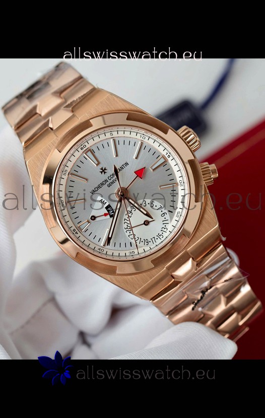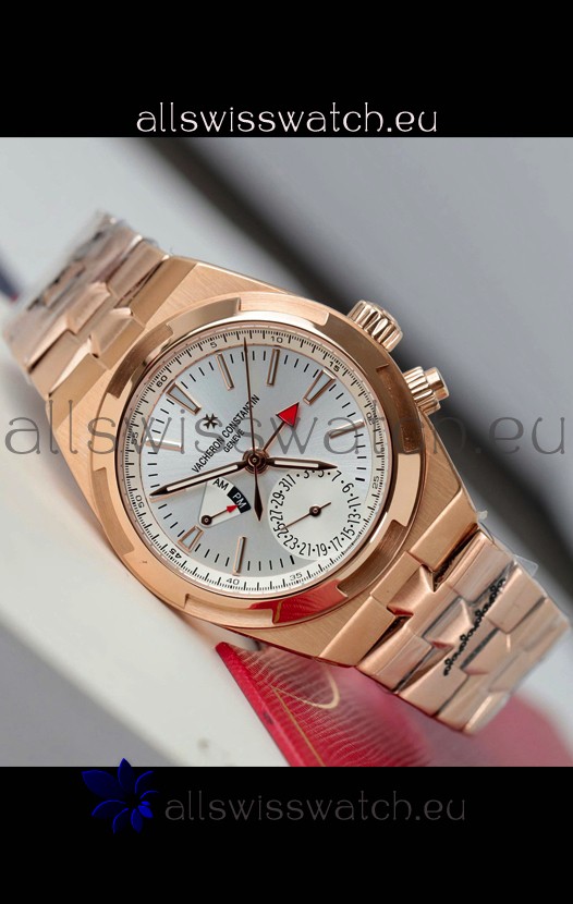 Vacheron Constantin Overseas Dual Time Rose Gold 1:1 Mirror Swiss Replica Watch in Steel Dial